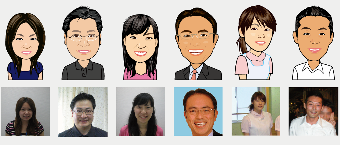 写真では伝える事が出来ない魅力や親しみやすさをAdobe Illustrator を用いて似顔絵で作成しご提供します。用途は名刺やPOP、DMやWEBなど豊富です。絵のタッチは、ビジネス用途でも違和感なくご利用頂けるコミカルタッチの似顔絵を作成しております。なお、他のタッチでの似顔絵作成も可能です。